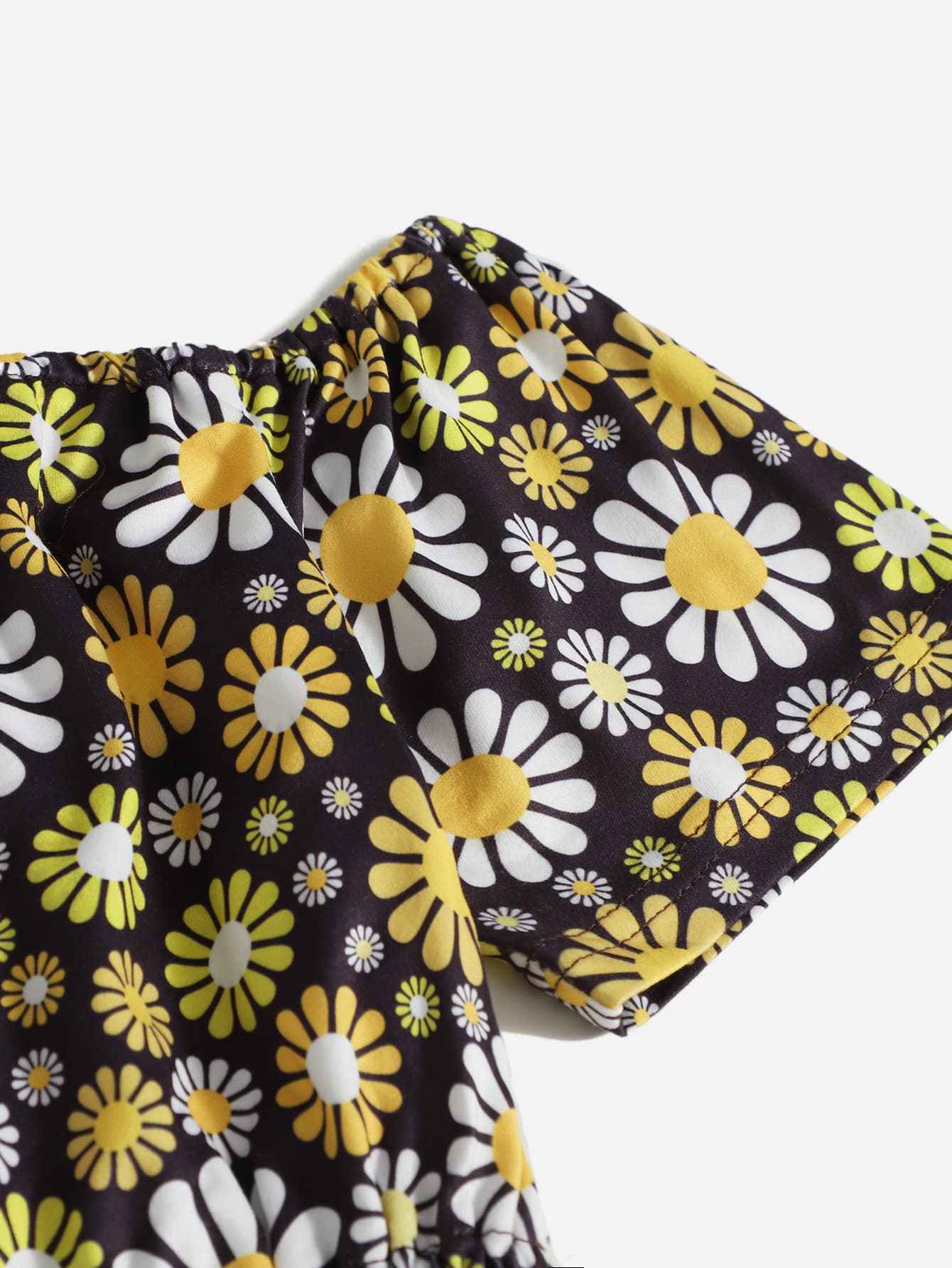Crop Top mit Gänseblümchenmuster, Schleife am Ausschnitt