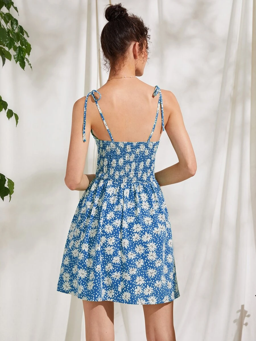 Kleid mit Gänseblümchen Muster und Band auf Schulter
