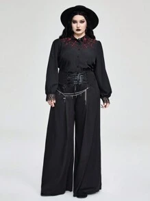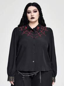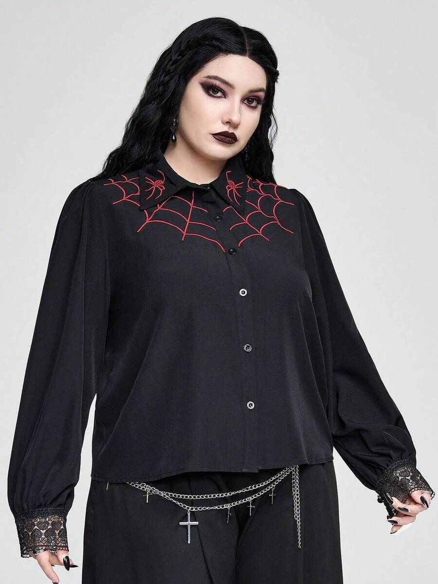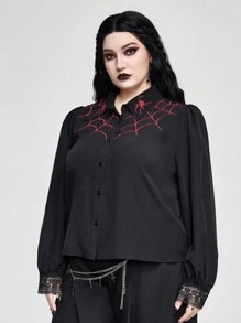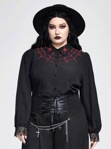Große Größen Bluse/Hemd im dunklen Gothic Stil mit Spinnen-Netz Stickerei in Rot