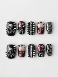10 Stück Halloween Gothic Schädel Stil Kunstnägel, hochwertige handgemachte künstliche Nägel Y2K Punk Stil abnehmbare Nagel Sticker, geeignet für Feiertage, Tanzen und den täglichen Gebrauch
