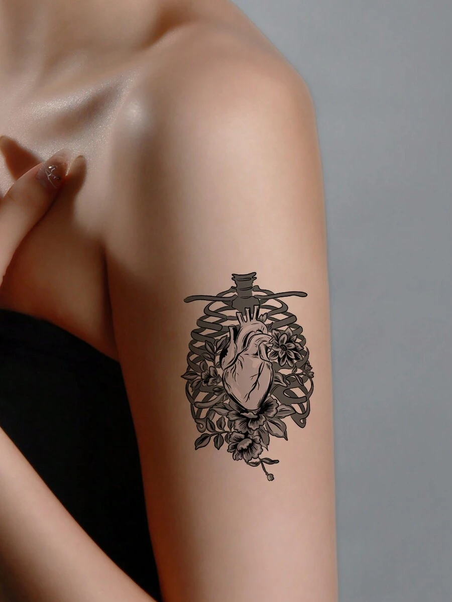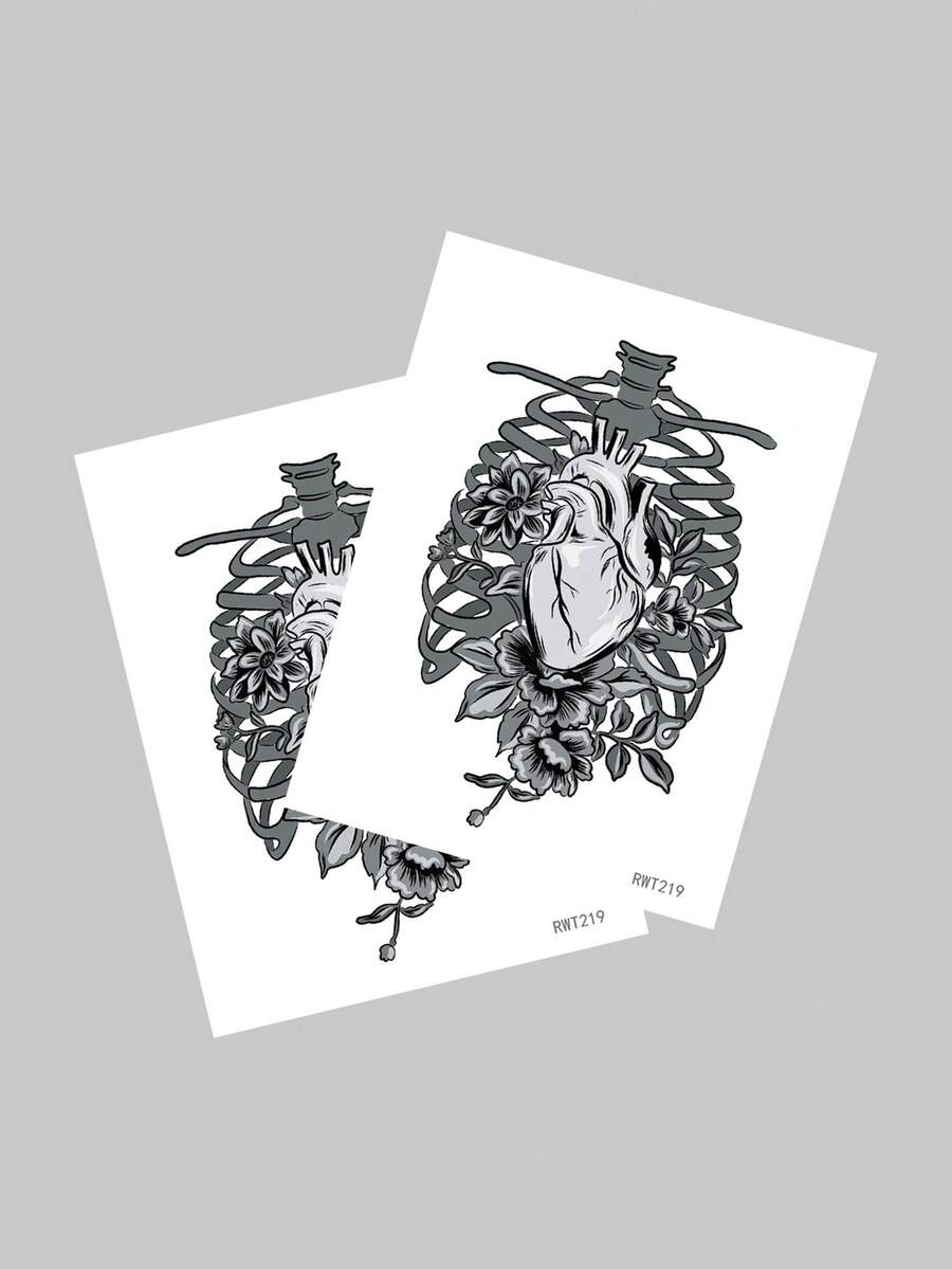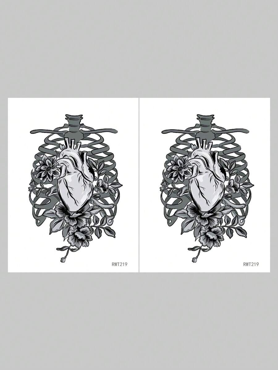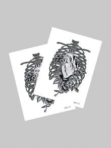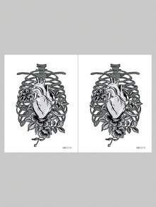 Debiesn 2 Blätter Tattoo Aufkleber Skelett & Herz Muster,