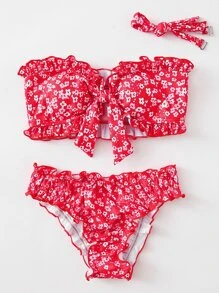 Bandeau Bikini Set mit Ditsy-Blumenmuster und Rüschen, Sommer Strand