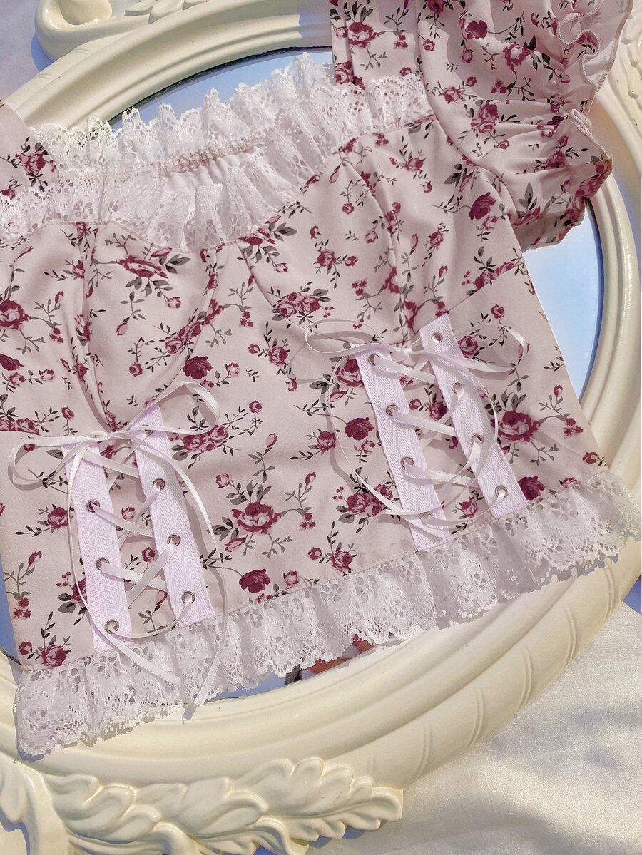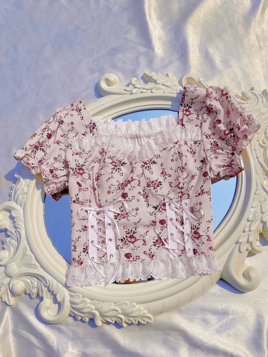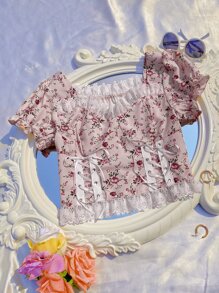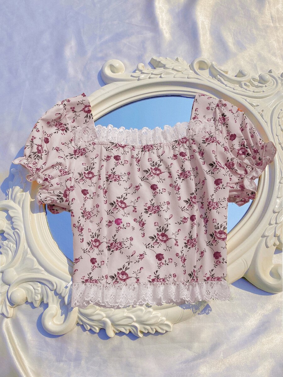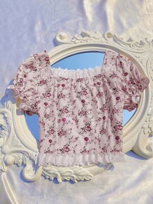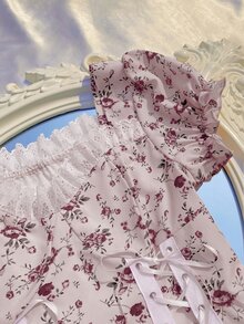 Bluse mit Blümchen Muster, Spitzenbesatz