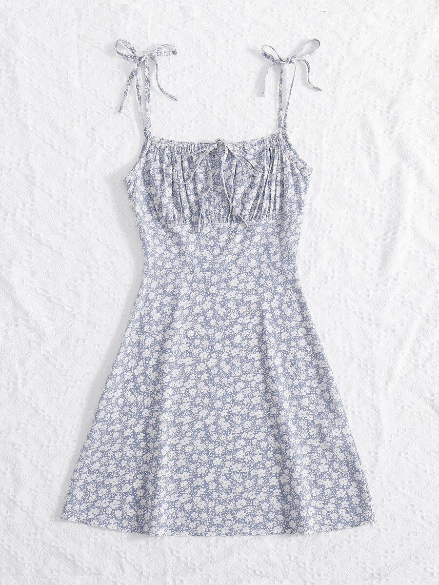 Cami Kleid mit Blümchen Muster, Knoten vorn