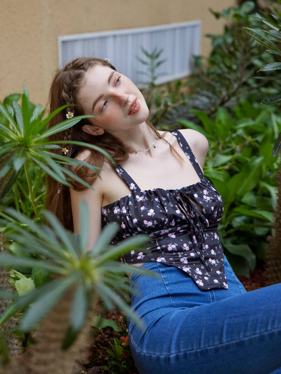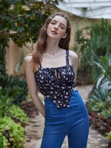 Cami Top mit Blümchen Muster, Rüschen, Zipfelsaum