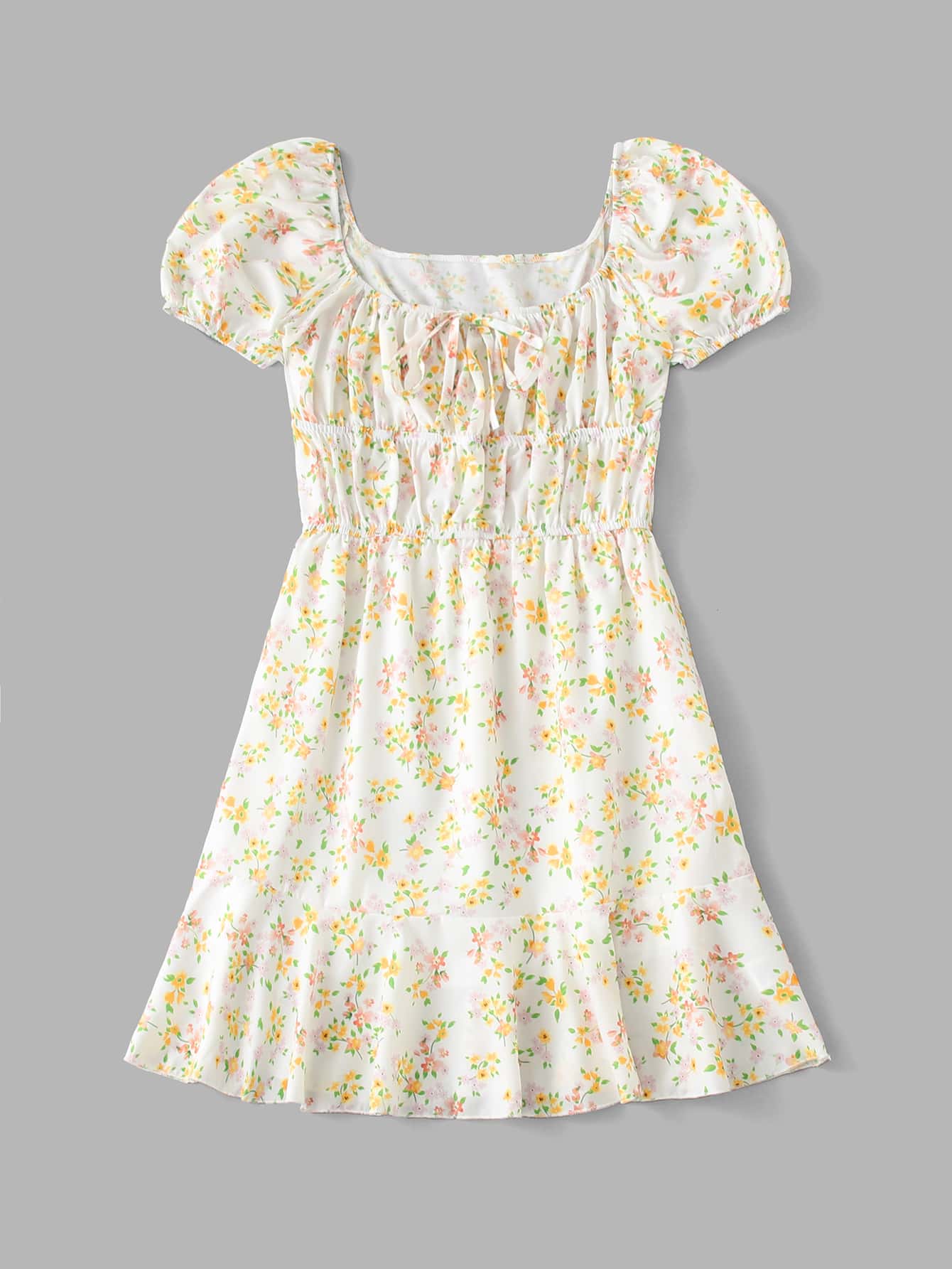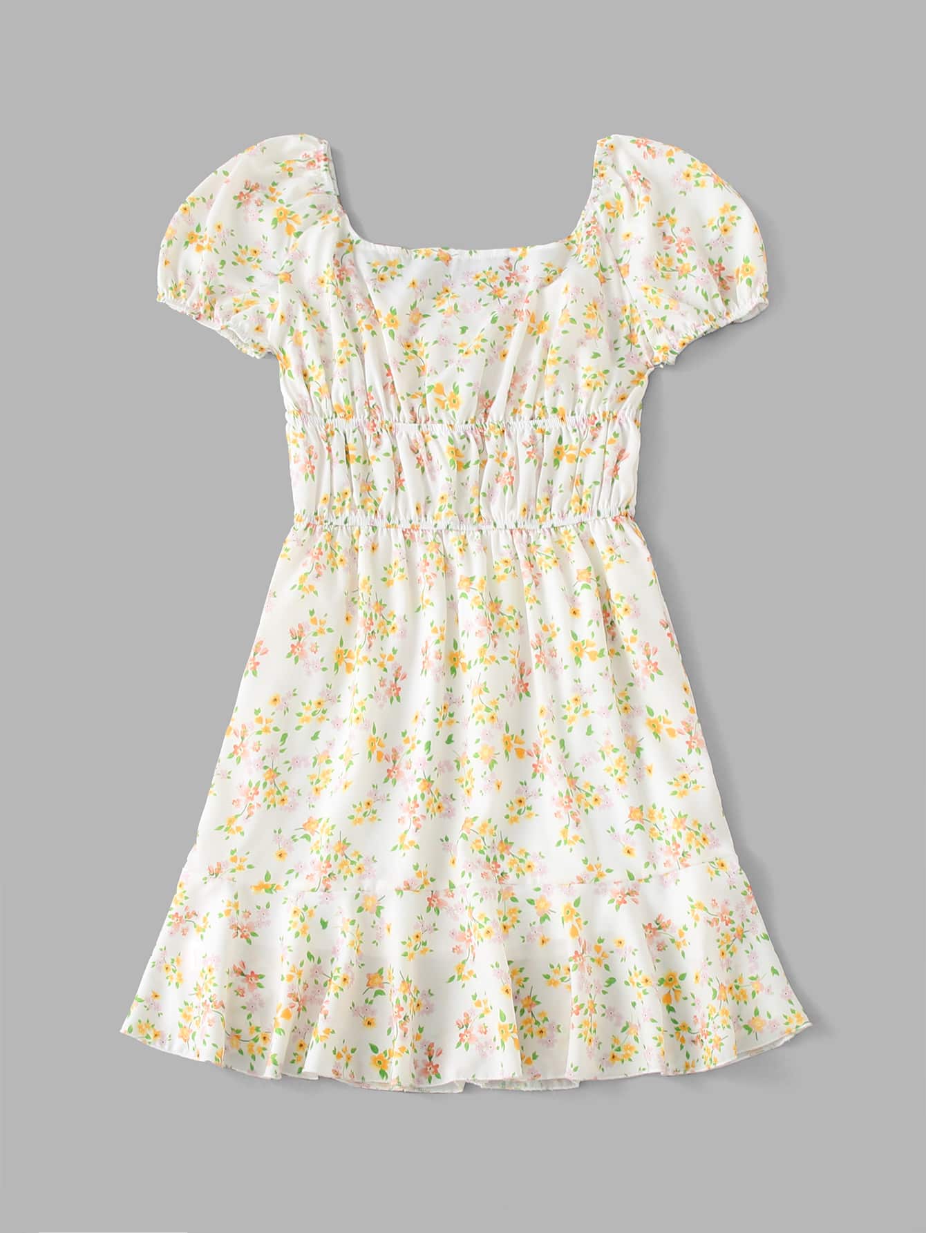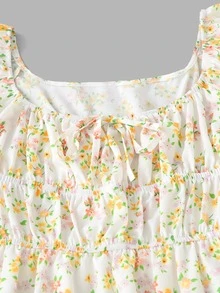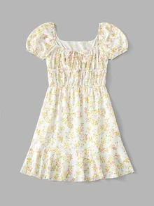 Kleid mit Blümchen Muster, Rüschen