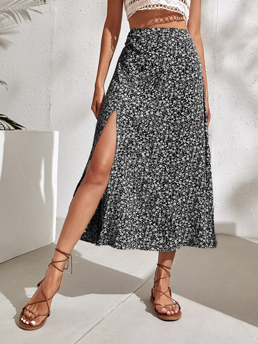 Maxi-Rock mit engen Blütenprint und Schlitz für Strandurlaub, Damen-Outfits