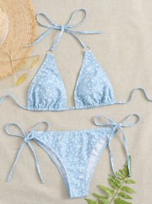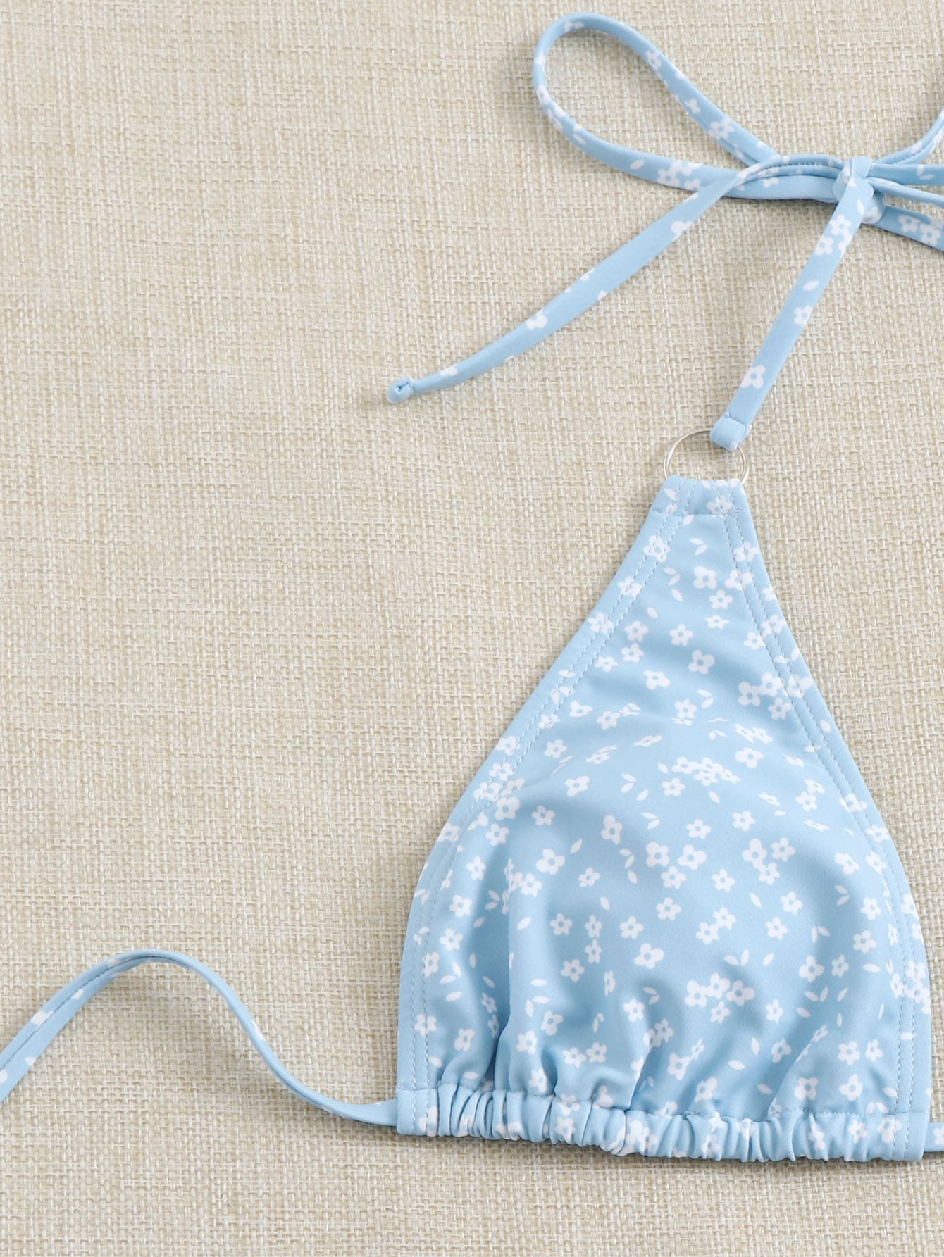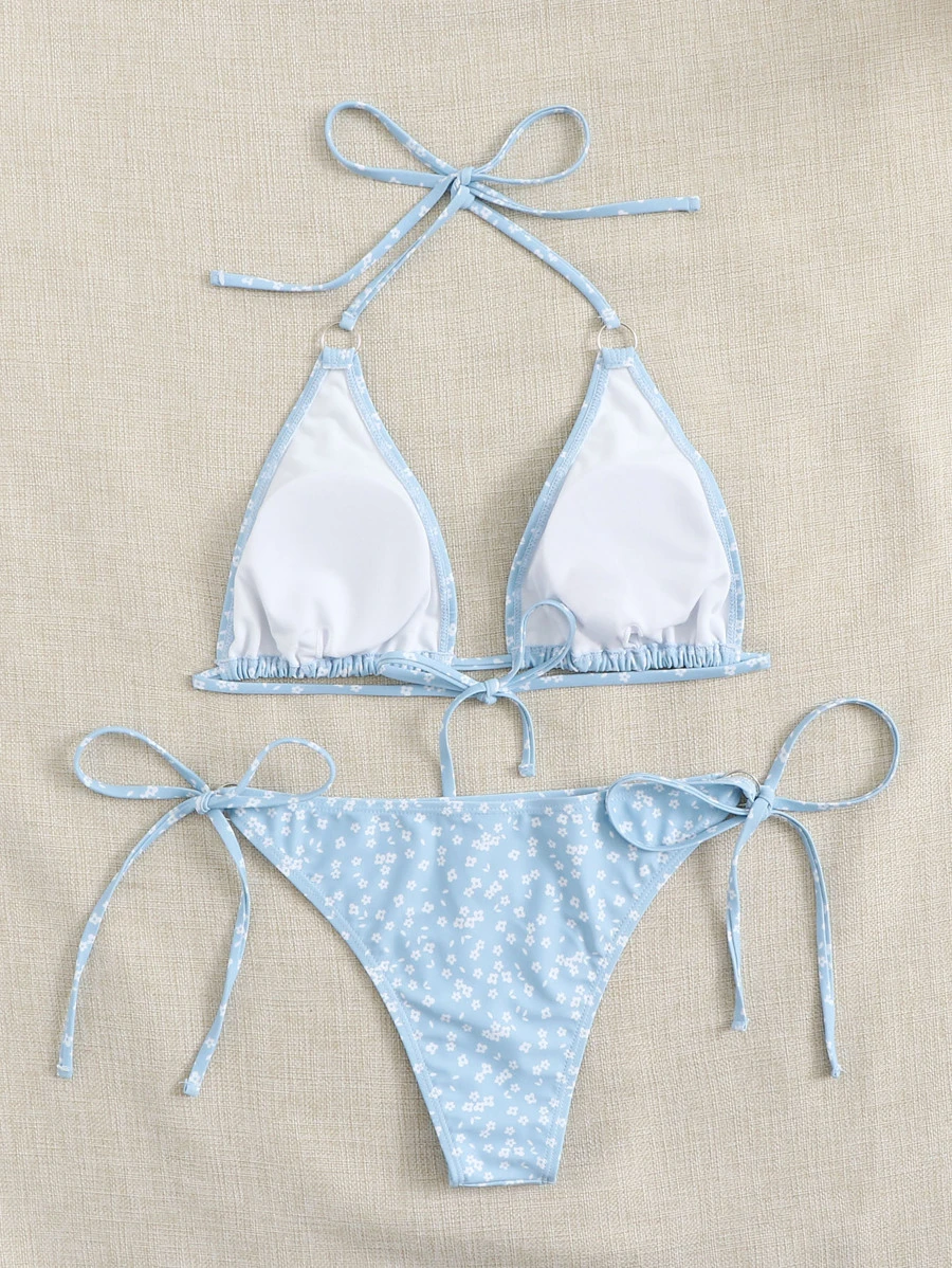 Bikini-set Mit Blumenmuster Und Seitlichen Schnürsenkeln Für Den Sommer Und Den Strand
