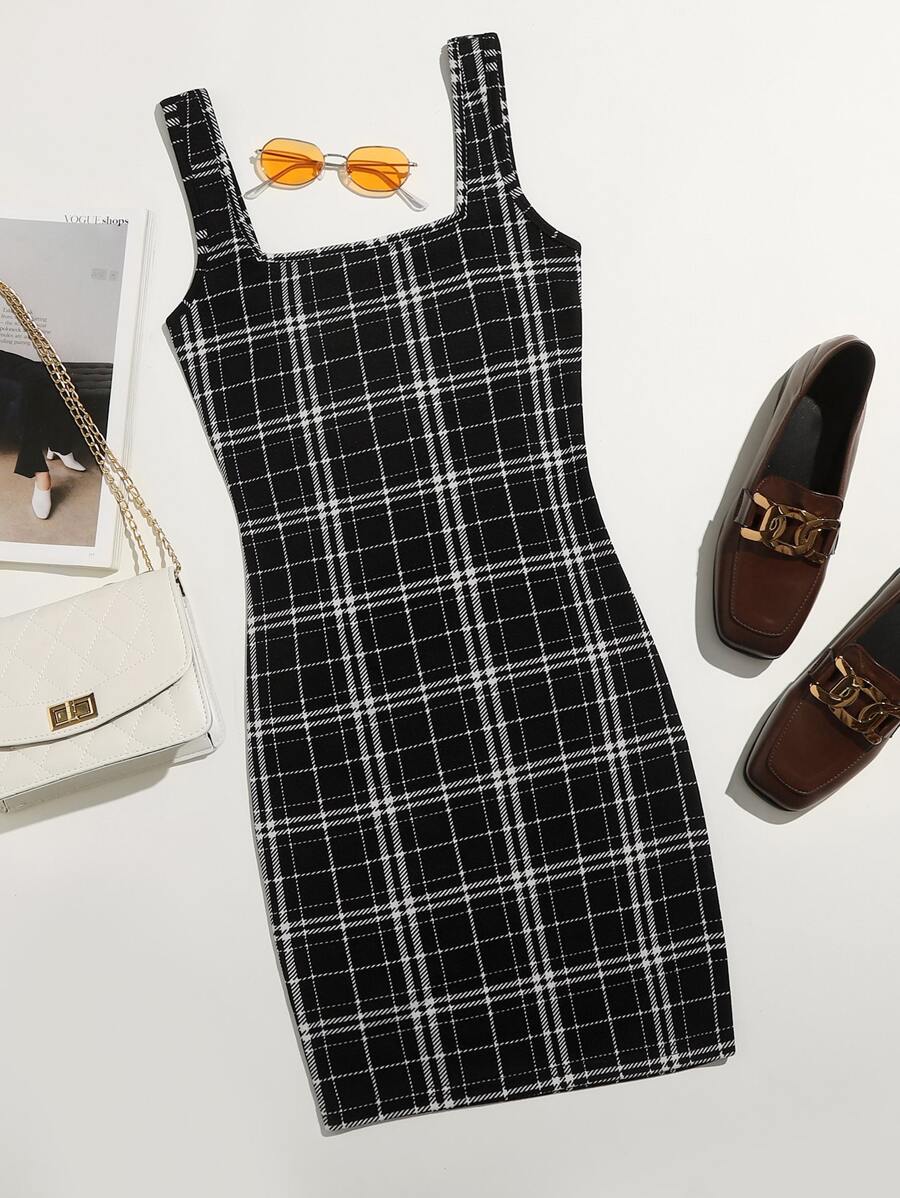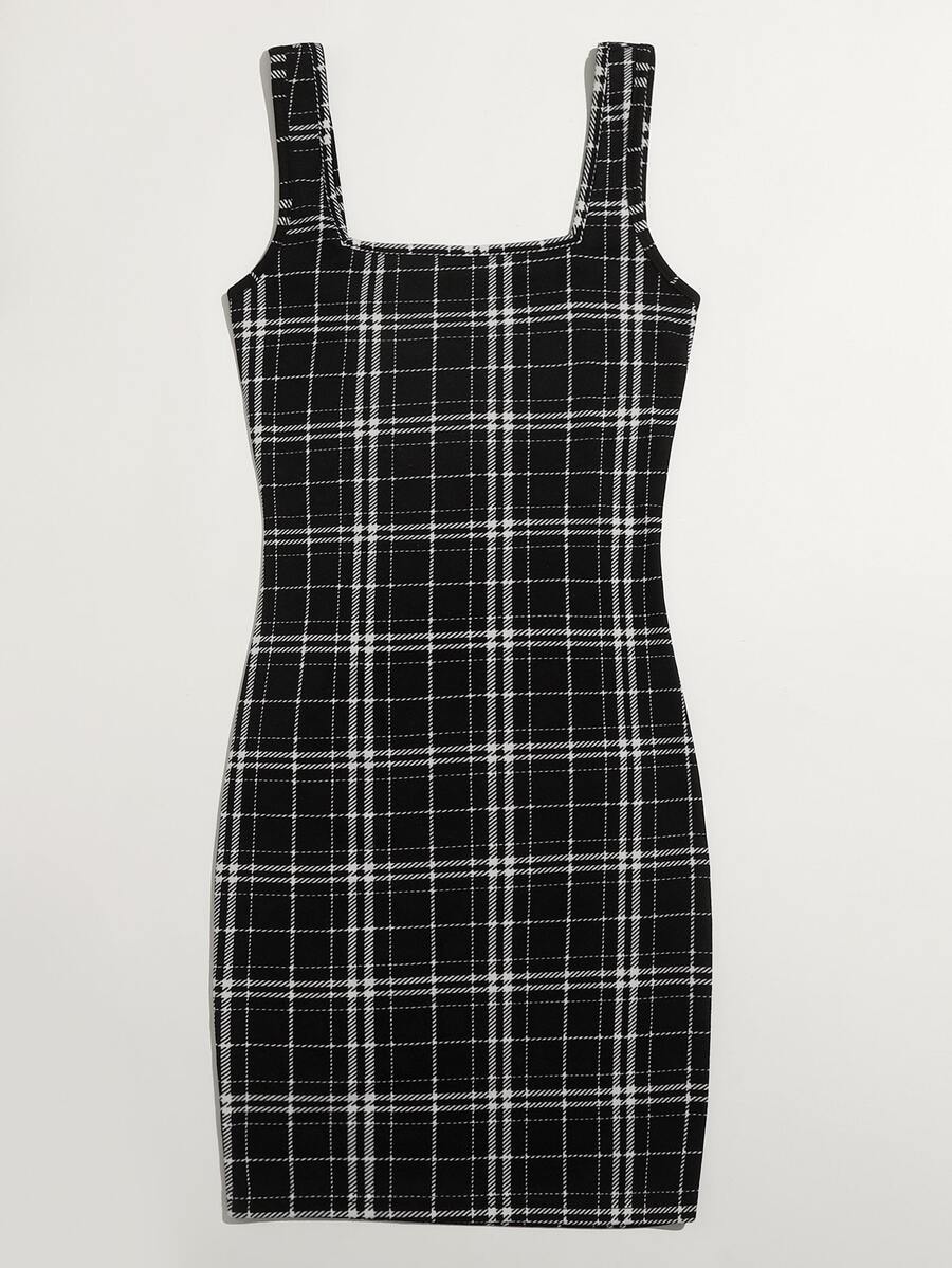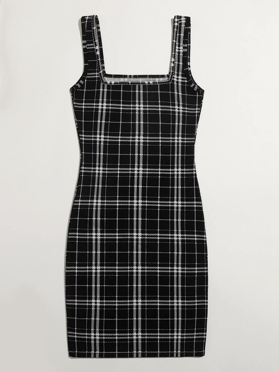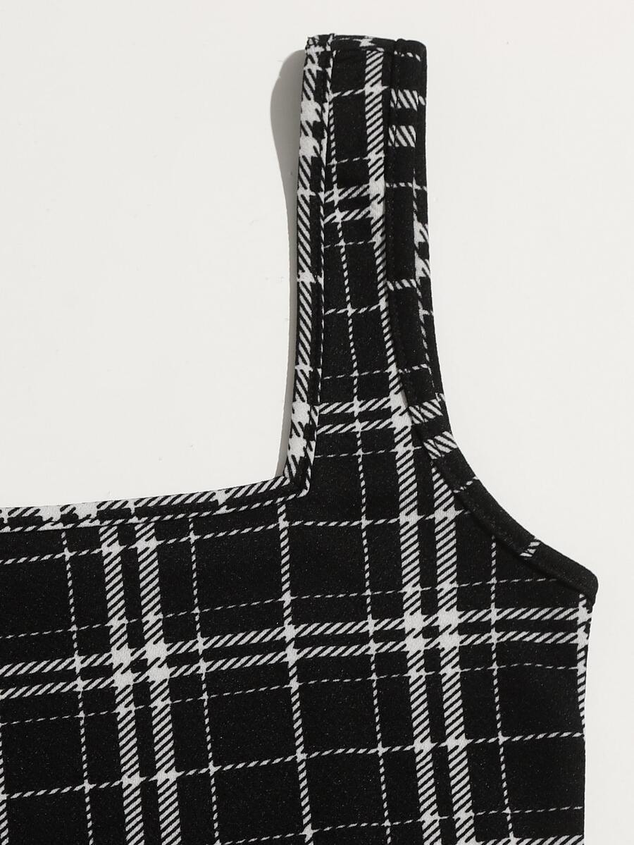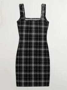 Kleid mit doppelten quadratischen Kragen und Karo Muster