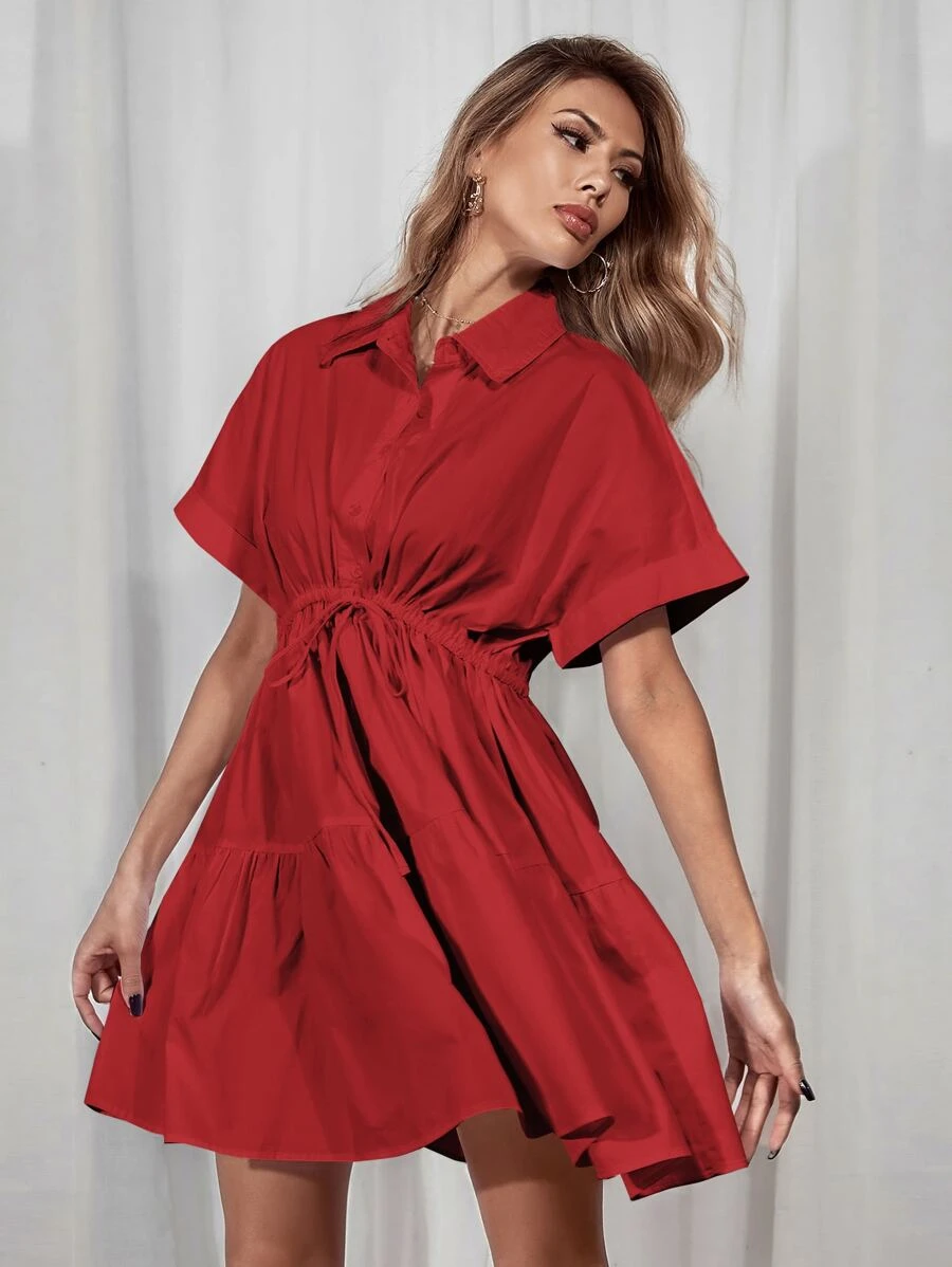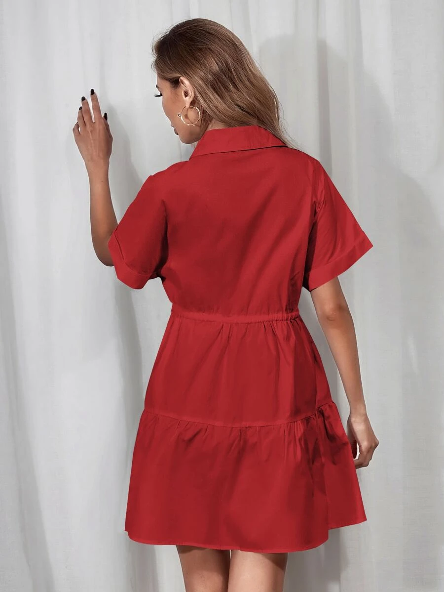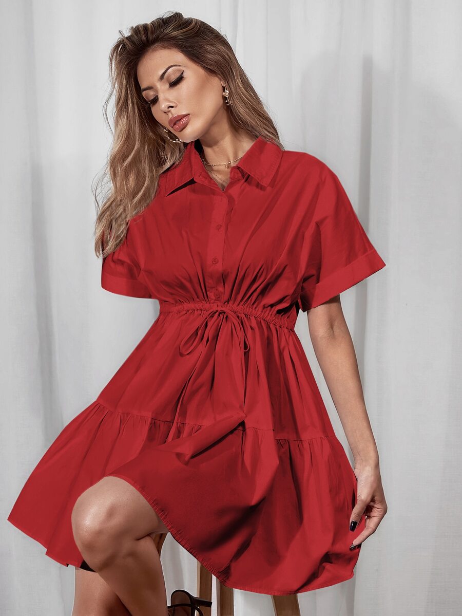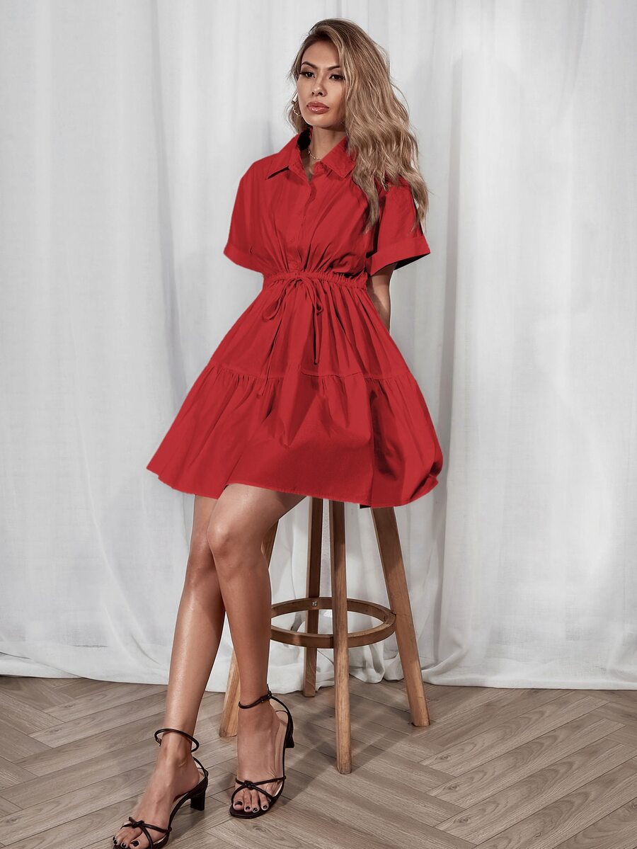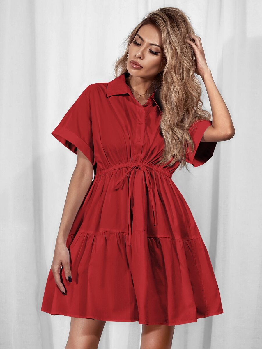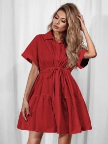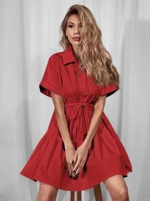 Hemdkleid mit Schnürung-Taille und Rüschenbesatz