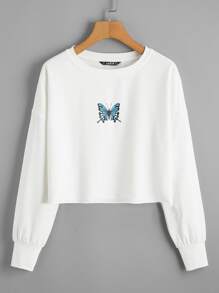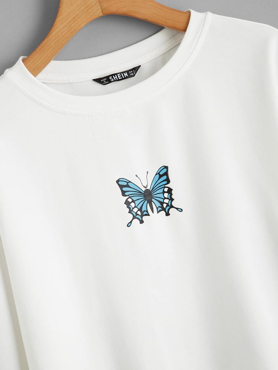 Pullover mit sehr tief angesetzter Schulterpartie und Schmetterling Muster