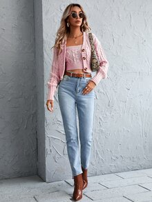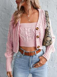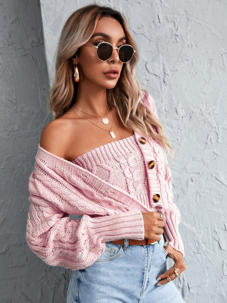 Crop Strickjacke mit sehr tief angesetzter Schulterpartie und Cami Top