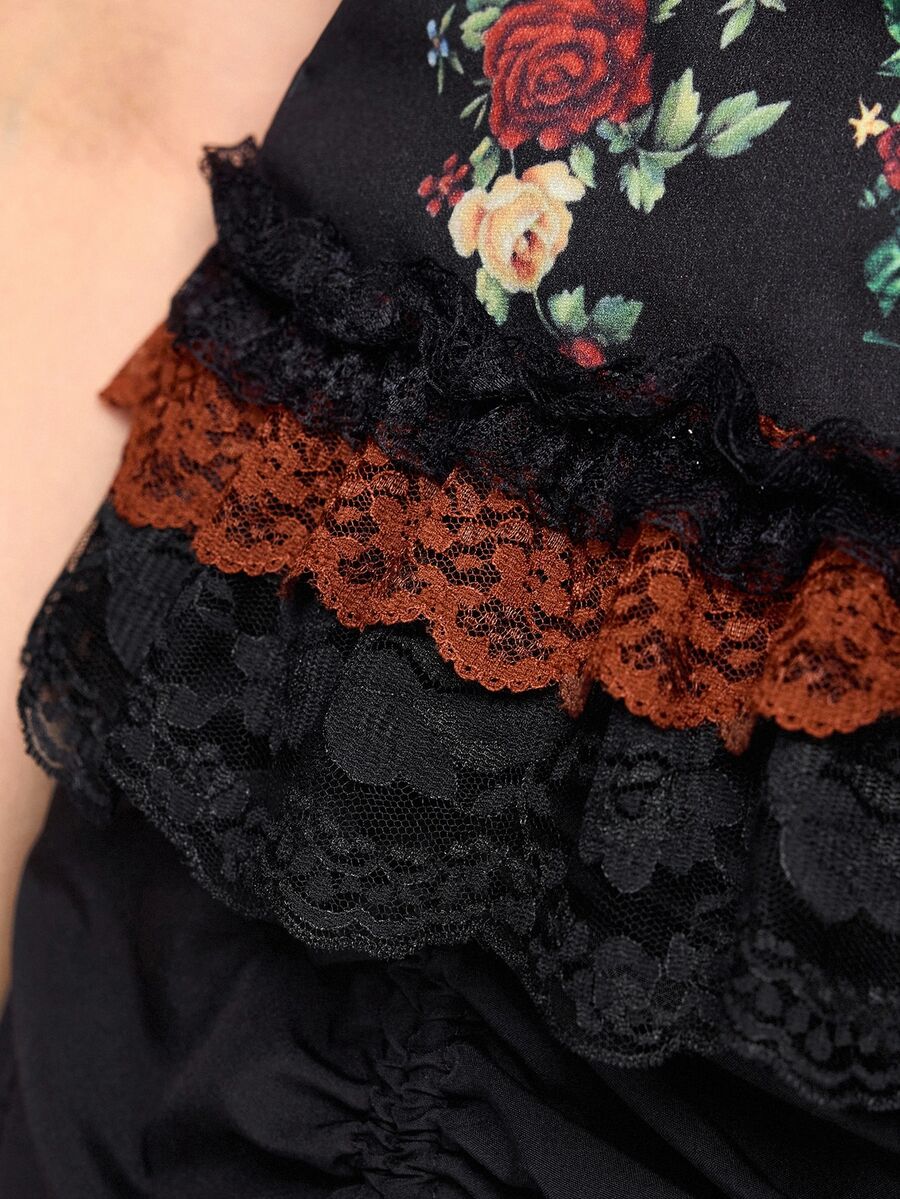 EDITION Damen Große Größen Off-Shoulder Top mit dunklem Engel & Spitzenbesatz Metalldekoration