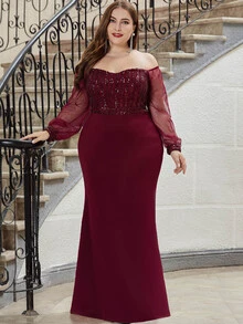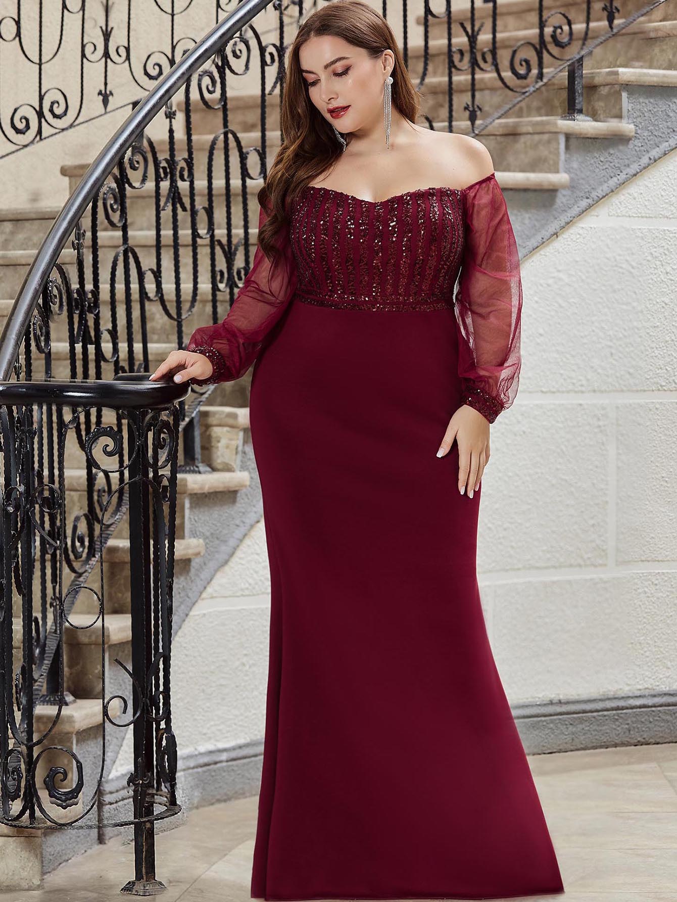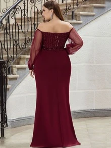 EVERPRETTY Samt Kleid mit Stufensaum und Pailletten