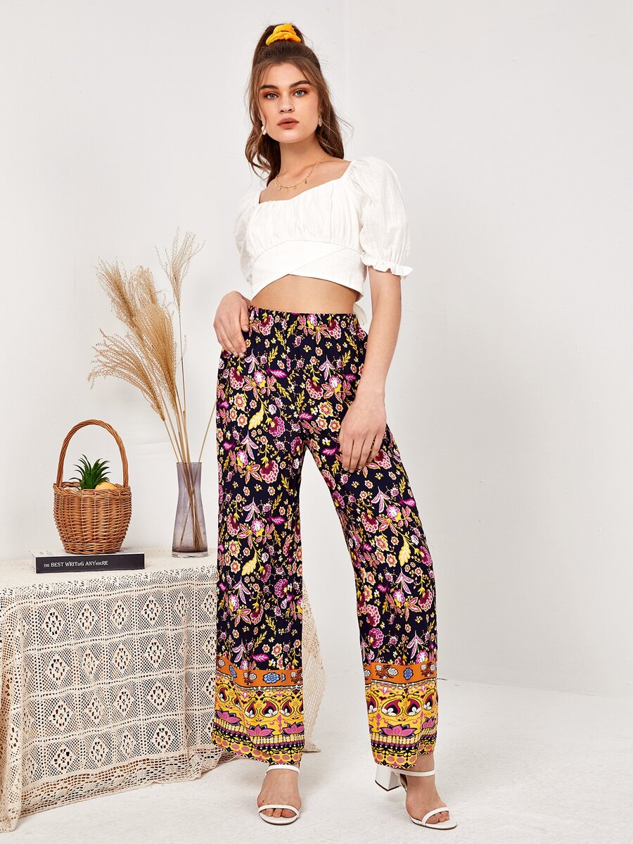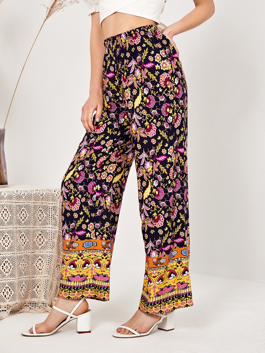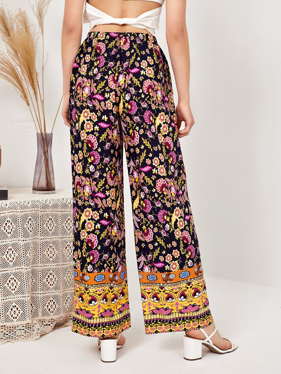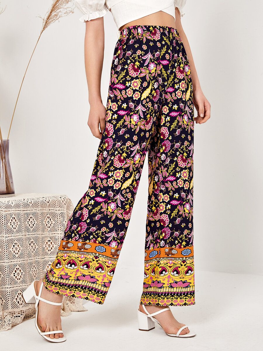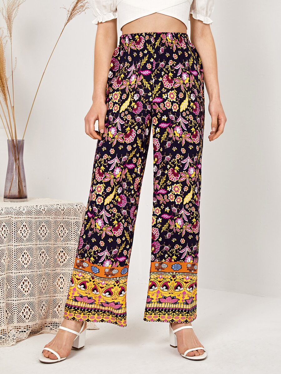 Palazzo Hose mit elastischer Taille und Blumen Muster