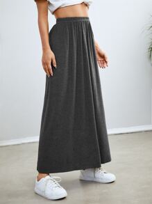 Einfarbiger Rock mit elastischer Taille