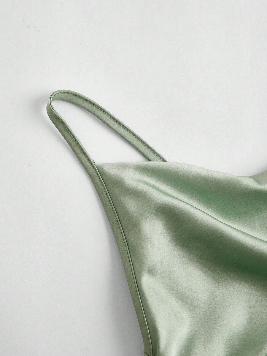 Fairycore Elegantes Party/urlaub/prächtiges Tief Ausgeschnittenes Satin-, Meerjungfrauen-kleid Mit Drapiertem V-ausschnitt In Bodycon-form Und Neckholder-träger