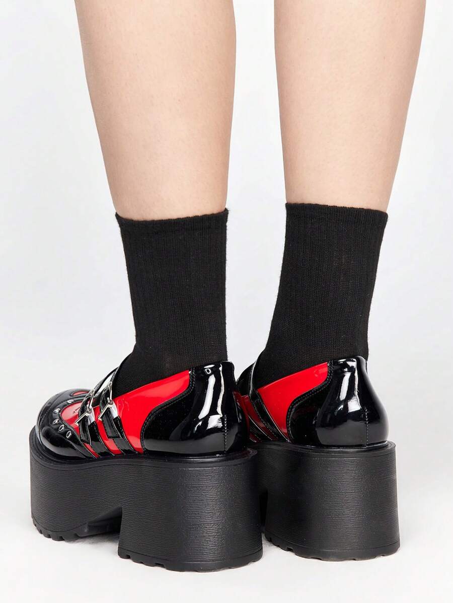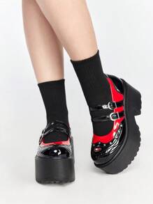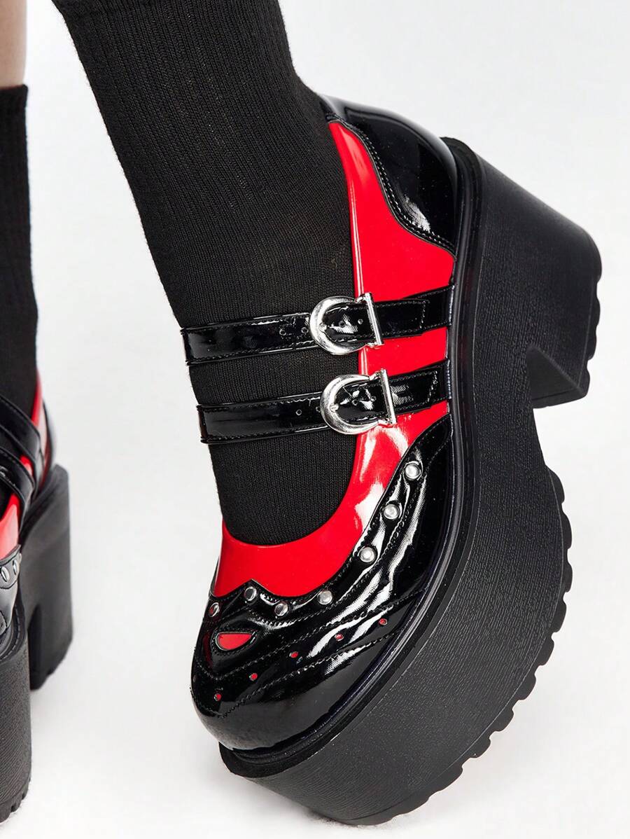 Goth Europäische und amerikanische Modenschau Stil schwarze High Heel Schuhe, rote Rock Punk Schuhe, Multi-Riemen Nieten Mary Jane gotischen Schuhe, Frauen Keilabsatz und Plattform Sole Schuhe