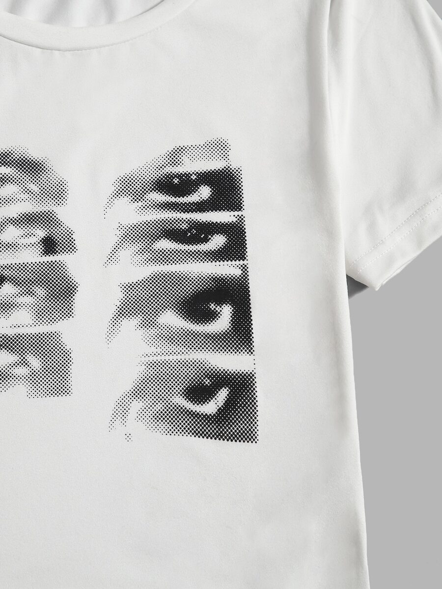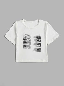 Crop T-Shirt mit Auge Grafik,