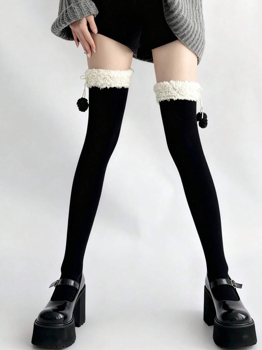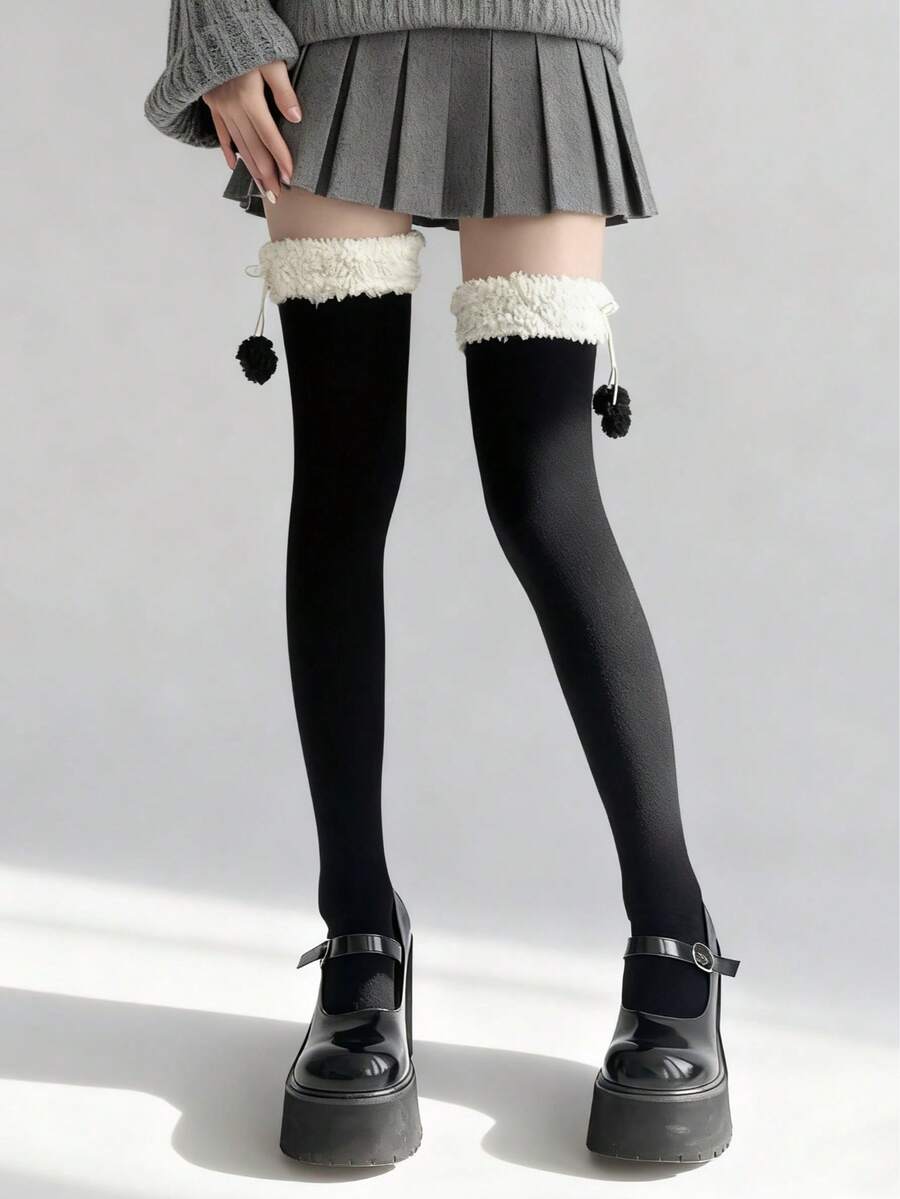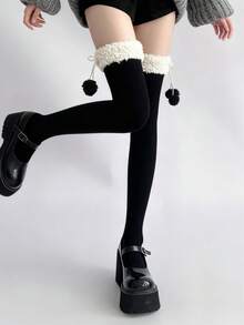Fairycore 1 Paar süße Überknie-Socken, JK Lolita Schulstil Kniestrümpfe, verstärkte warme Plüsch Überknie-Socken, Herbst- und Winterwarme Überknie-Socken