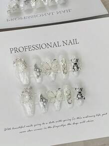 Fairycore 10 Stücke Lang Sarg Schmetterling & Cartoon Bär Dekor, Kunstnägel Bausatz