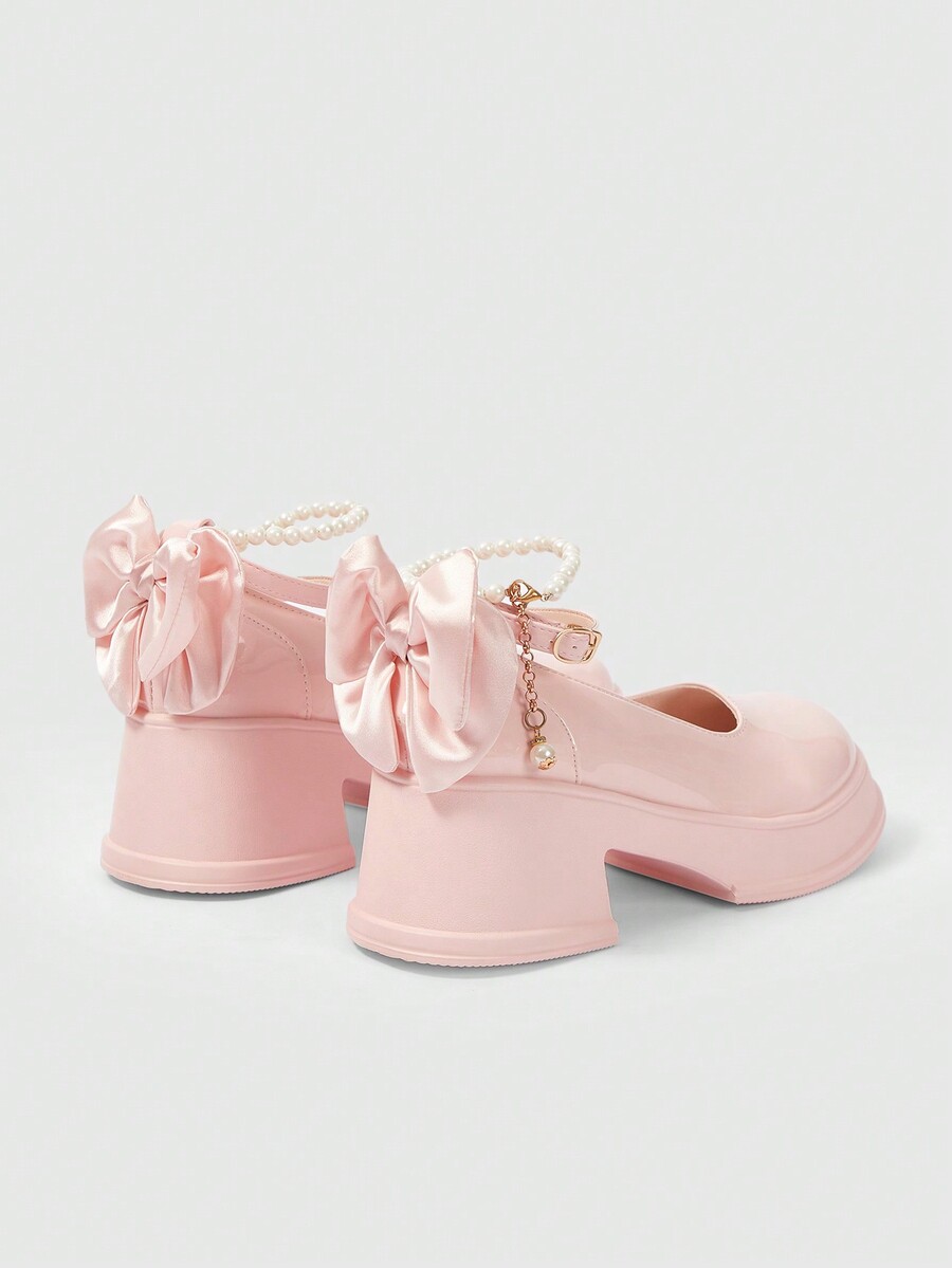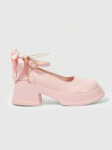 Fairycore 1 Stück rosa Schleife geschmückte Damen Keilabsatz und Plateauschuhe