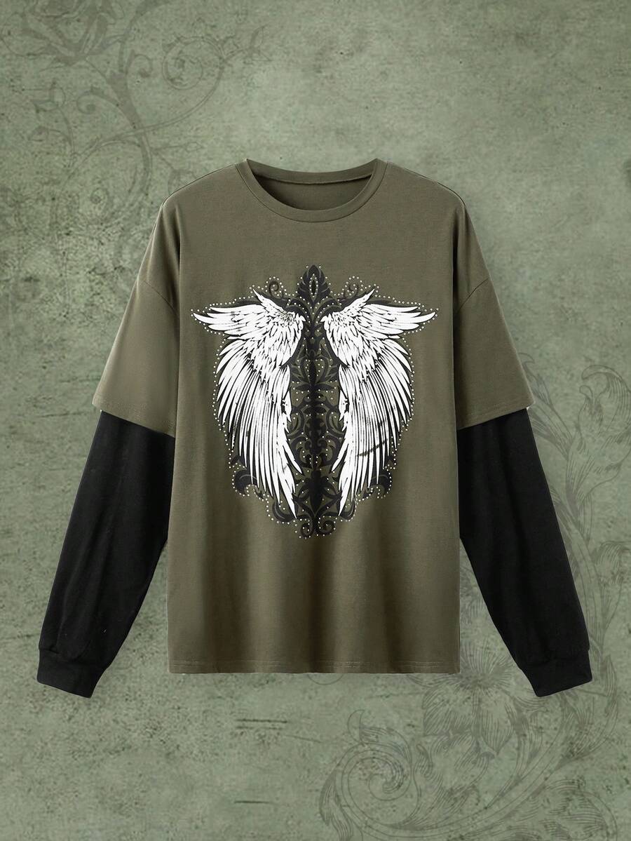 Fairycore T-Shirt mit 2 in 1 Flügeln Grafik,