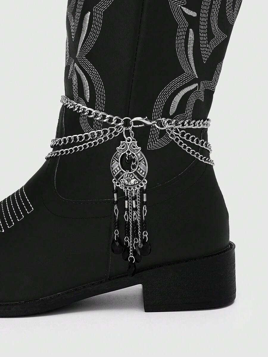 Fairycore 2 Stücke Boho-Stil Quasten Anhänger Mehrschichtiges Metall Schuh Kette Stiefel Hängedekoration, Retro für Halloween, tägliche Schuhe & Stiefel Dekoration, Geburtstag Feiertag Ramadan Geschenk