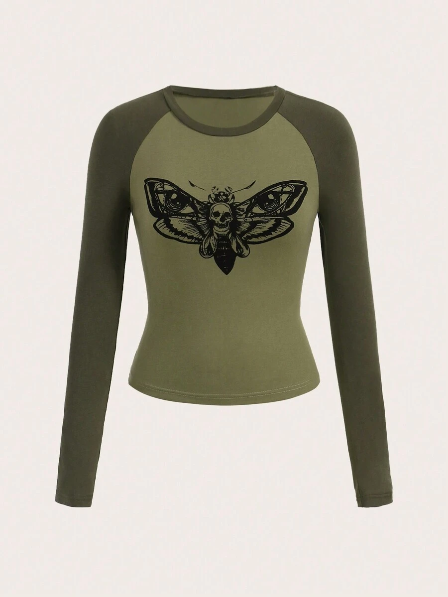 Fairycore T-Shirt mit Raglanärmeln und Schmetterlingsgrafik