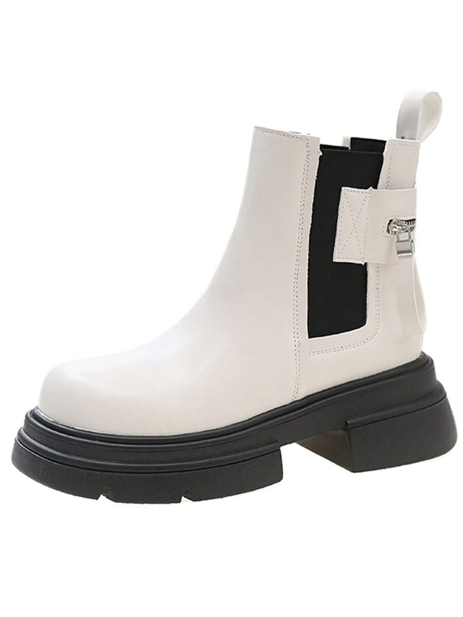 Fairycore Modische, elastische, schmale Schornsteinstiefel im britischen Stil mit Reißverschluss und dicker Sohle