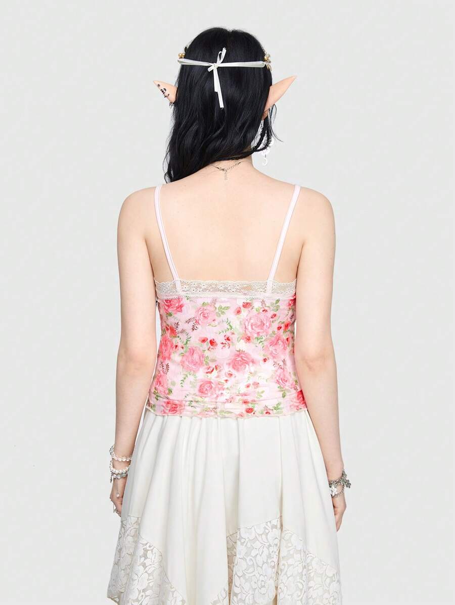 Fairycore Top Mit Spaghettibügeln Und Floralen Patchwork-spitzenbordüren