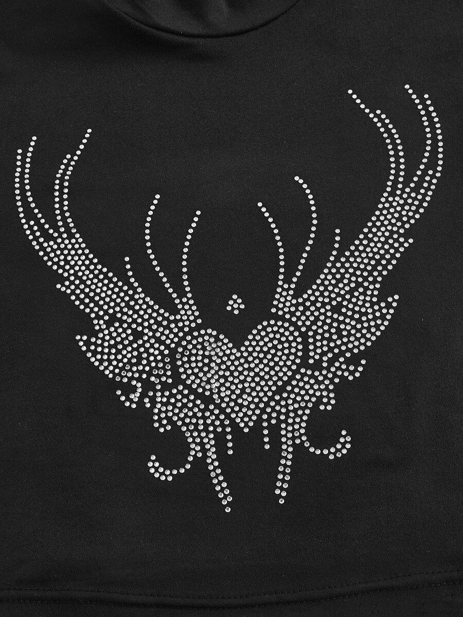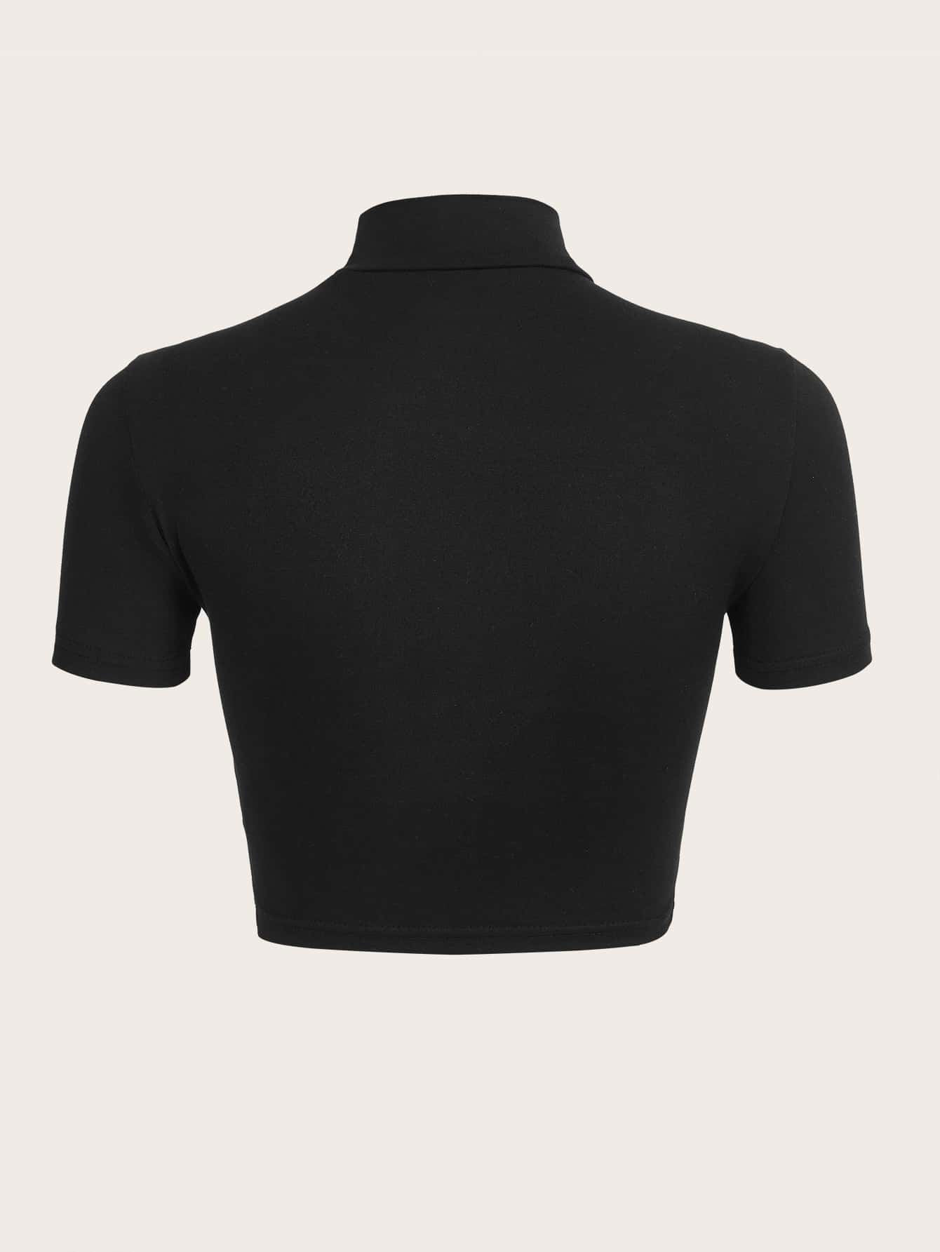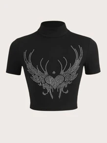 Crop T-Shirt mit Herz Strass, Stehkragen,