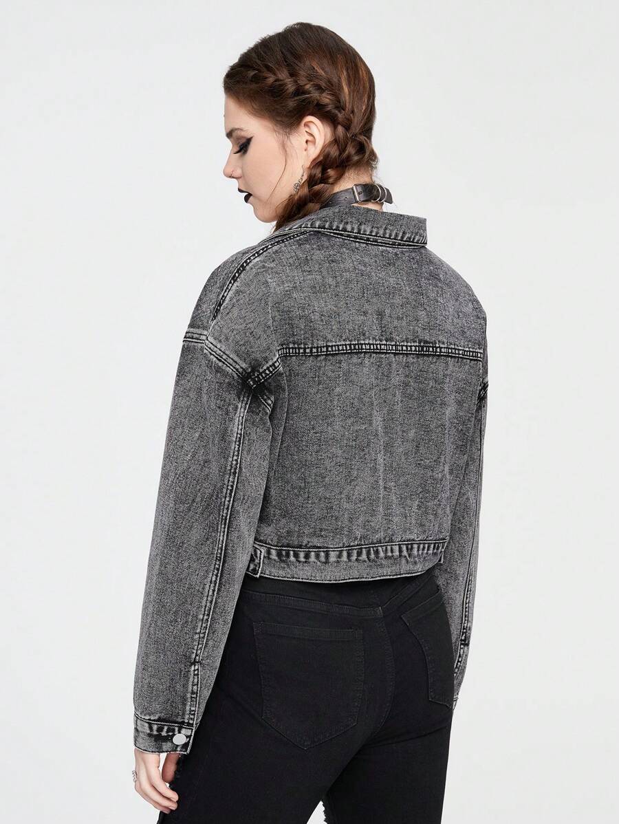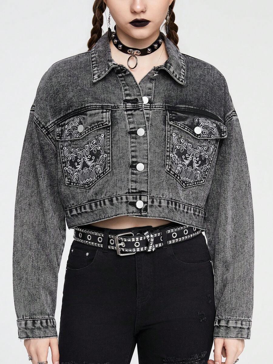 Fairycore Damen Einfarbige Denim Jacke mit Knöpfen und Taschen, langärmlig
