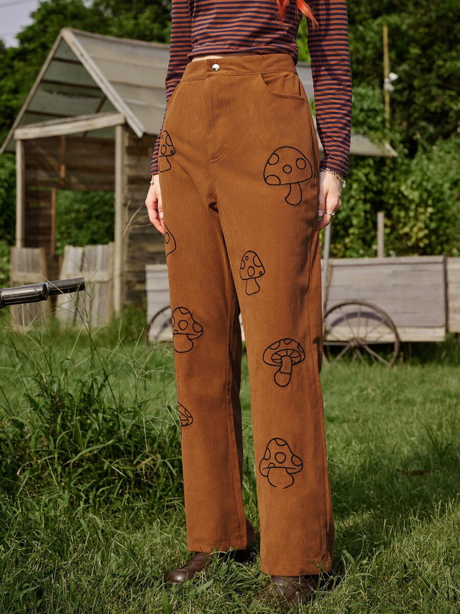 Fairycore Hose mit Pilz Stickerei
