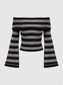 Fairycore Herz-ausschnitt Gestreifter Pullover Mit Ausgestellten Ärmeln