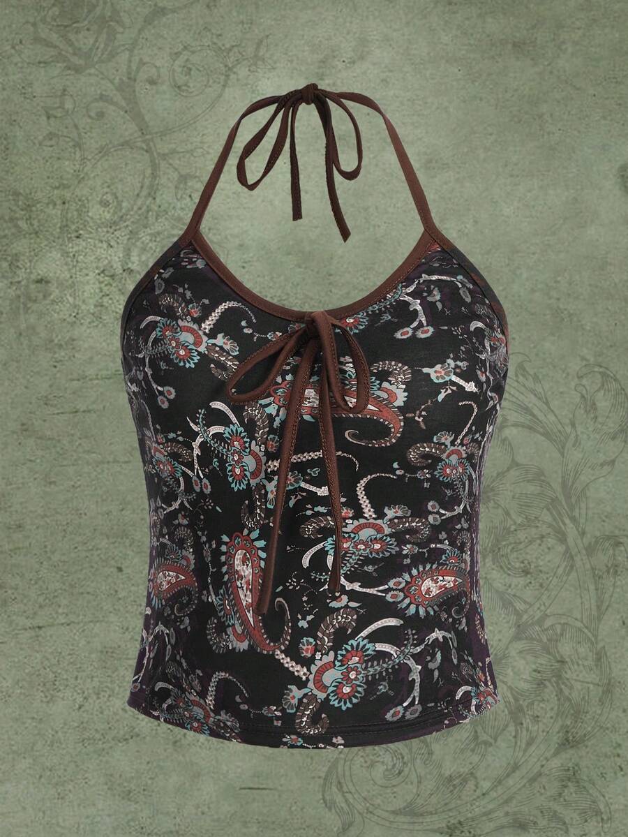Fairycore Trägertop mit Paisley Muster, Band vorne,