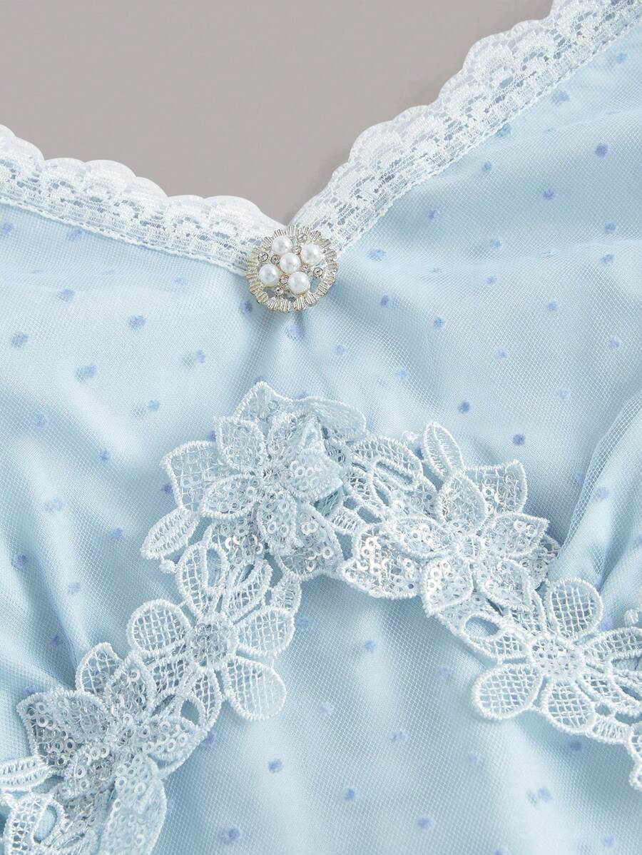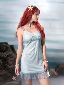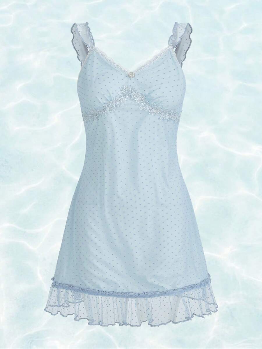 Fairycore Durchsichtige Spitze Rüschen Rüschensaum Einfarbig Lässig Kleid
