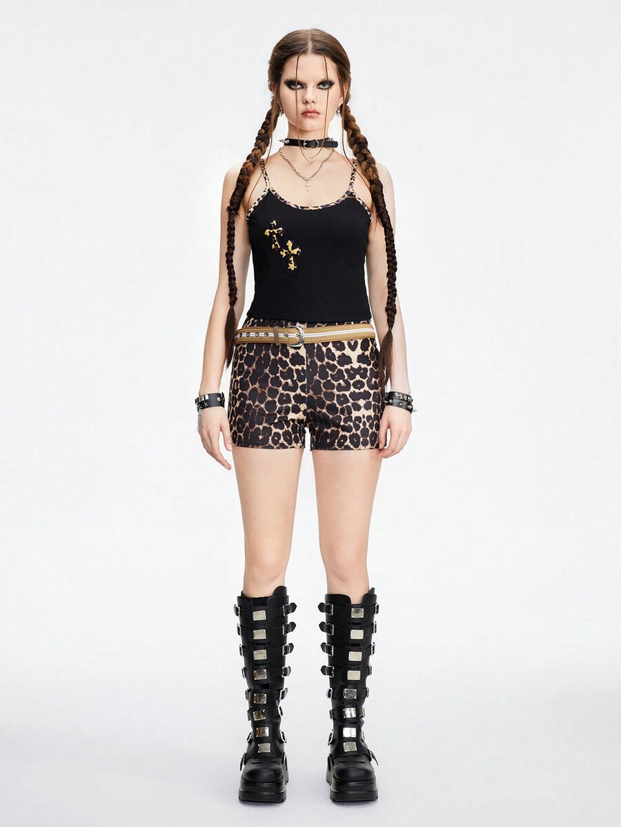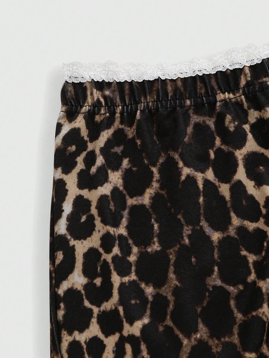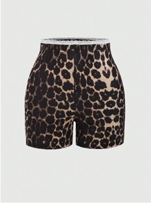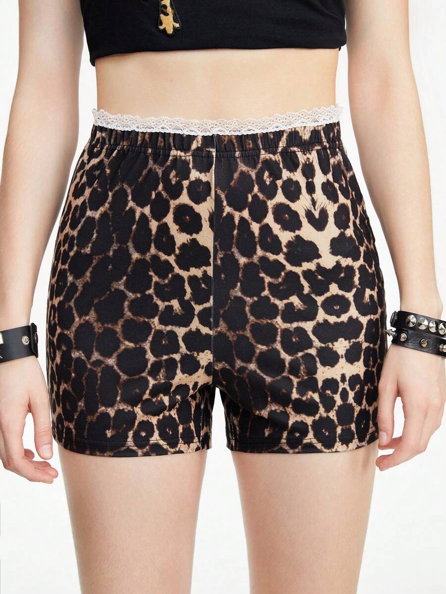 Fairycore Sexy Leopard Muster Kontrast Spitze enge elastische Shorts