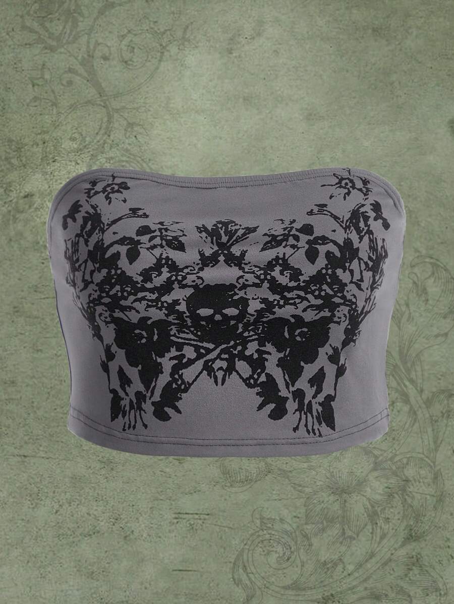 Fairycore Tube Top mit Schädel & Blume Muster