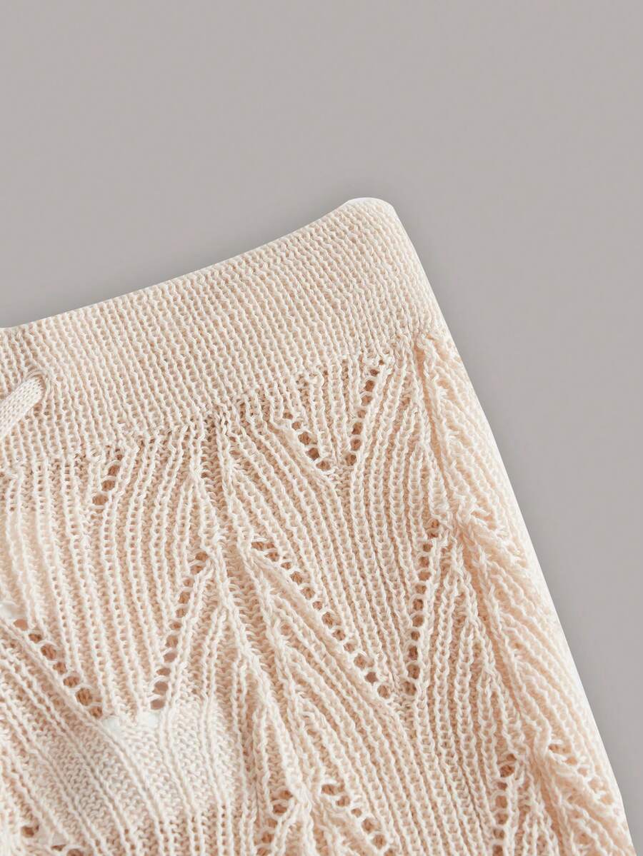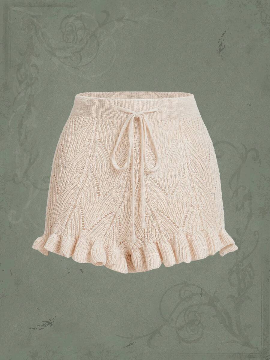 Fairycore Strick Shorts mit Einfarbig Tunnelzug, Rüschenbesatz,