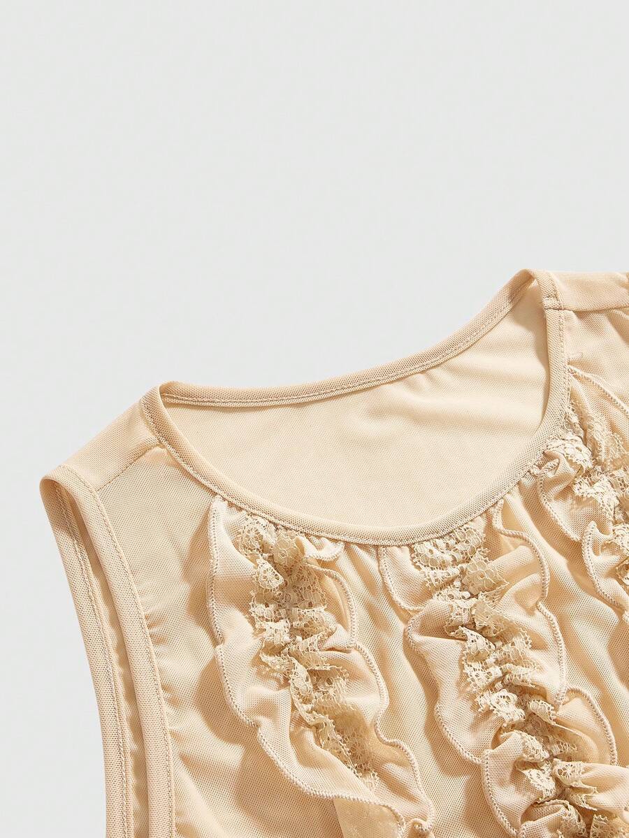 Fairycore Vintage Blumen Spitze Patchwork Rüschen Saum Damen Top