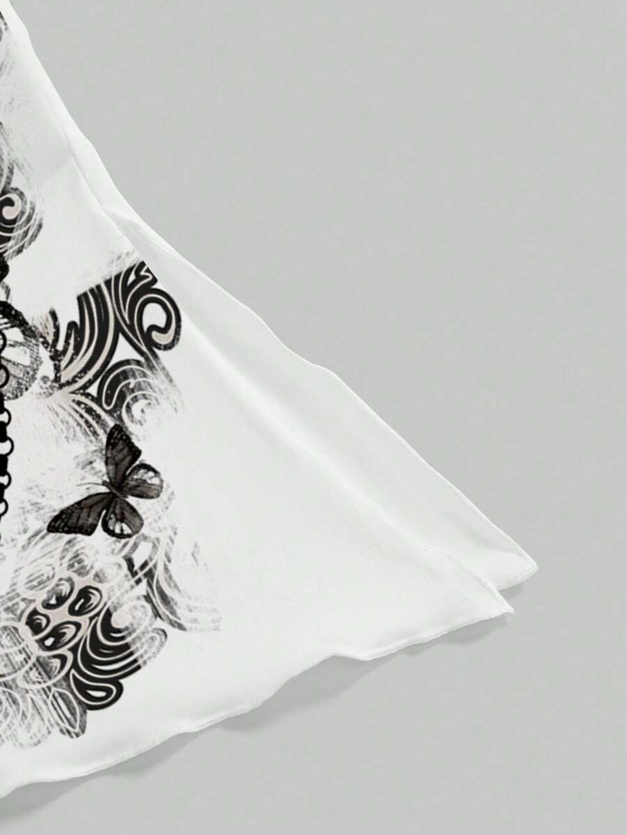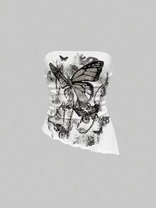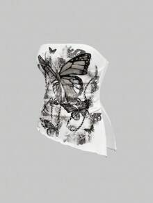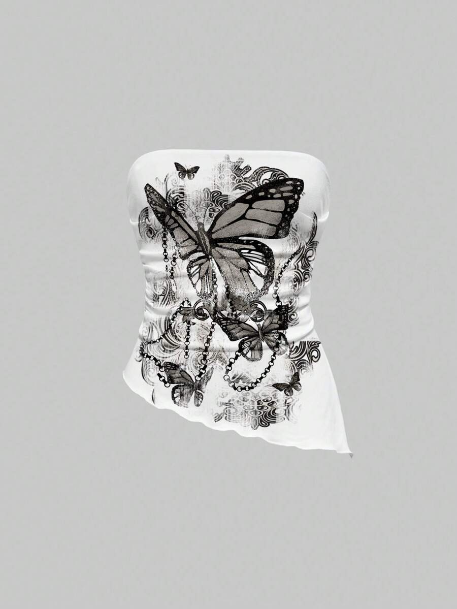 Fairycore Vintage Schmetterling Ketten Design Sexy Träger Crop Top, Röhren Allover Muster Bluse für Frauen