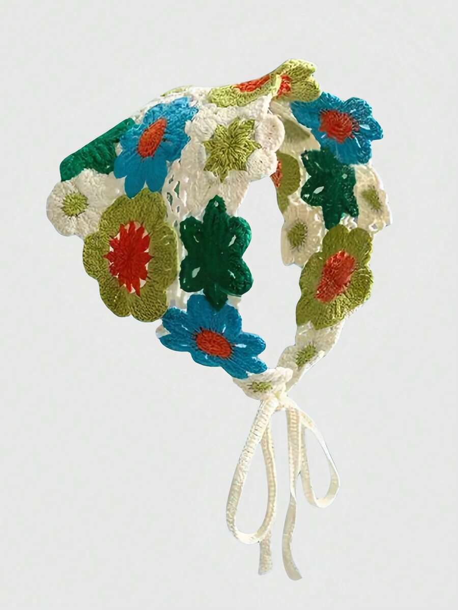 Fairycore Vintage Blume Muster dünner dreieckiger Schal, französischer Sommerkopftuch Stil für Fotoprops