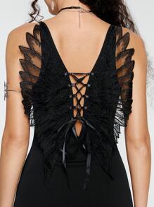 ROMWE Avant Cami Kleid mit Flügeln Flicken, Kontrast Spitzen