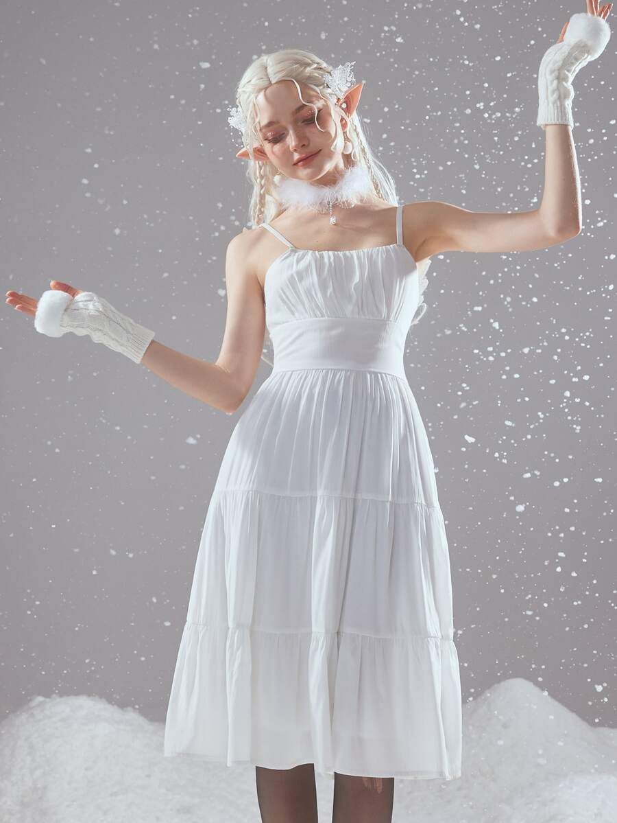 Fairycore Cami Kleid mit Flügeln Flicken, Rüschen