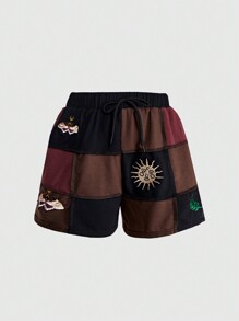 Fairycore Damen Shorts mit Sonnenmotiv-Muster und Kordelzug Taille, lässig