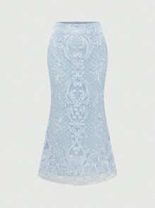 Fairycore Frauen Urlaubs-Spitze Maxirock mit Stickerei