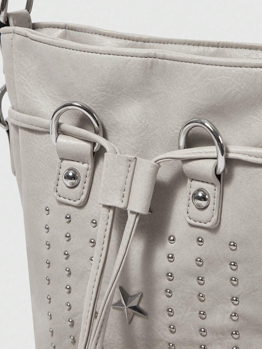 Fairycore Damen Y2K Desert Taupe Nieten Umhängetasche - Metall Stern & Boho Quaste Tasche für Festival, Strandurlaub, Nachtparty, Accessoires