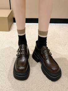 Fairycore Damen T-riemen Schnalle Braune Keil- Und Plattform Schuhe