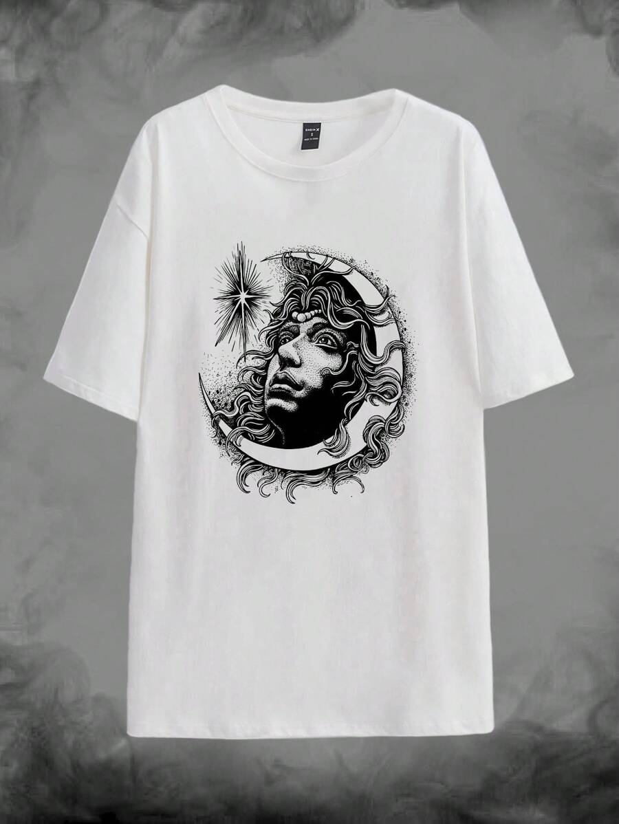 Fantinitattoo Drop Shoulder T-Shirt mit Mond & Figur Grafik,